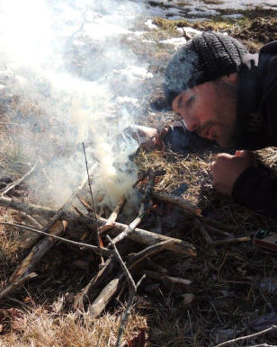 Think BIG, Think CONTRAST, Think 3’s. Create a ground-to-air symbol by making the letter “V” or “SOS”, at least 3 meters in length. Use whistle blasts x 3, mirror flashes x 3, horn blasts x 3, signal fires x 3 or rock piles x 3 to signal distress.
